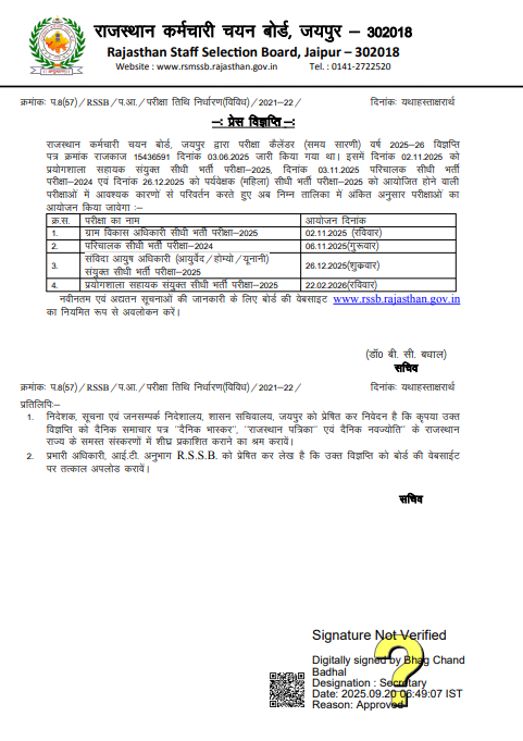 The exam will be held in a pen-and-paper mode at multiple centers across Rajasthan. Candidates are advised to keep checking the official RSSB notifications and ensure their application status and admit card are verified in advance to avoid last-minute complications.