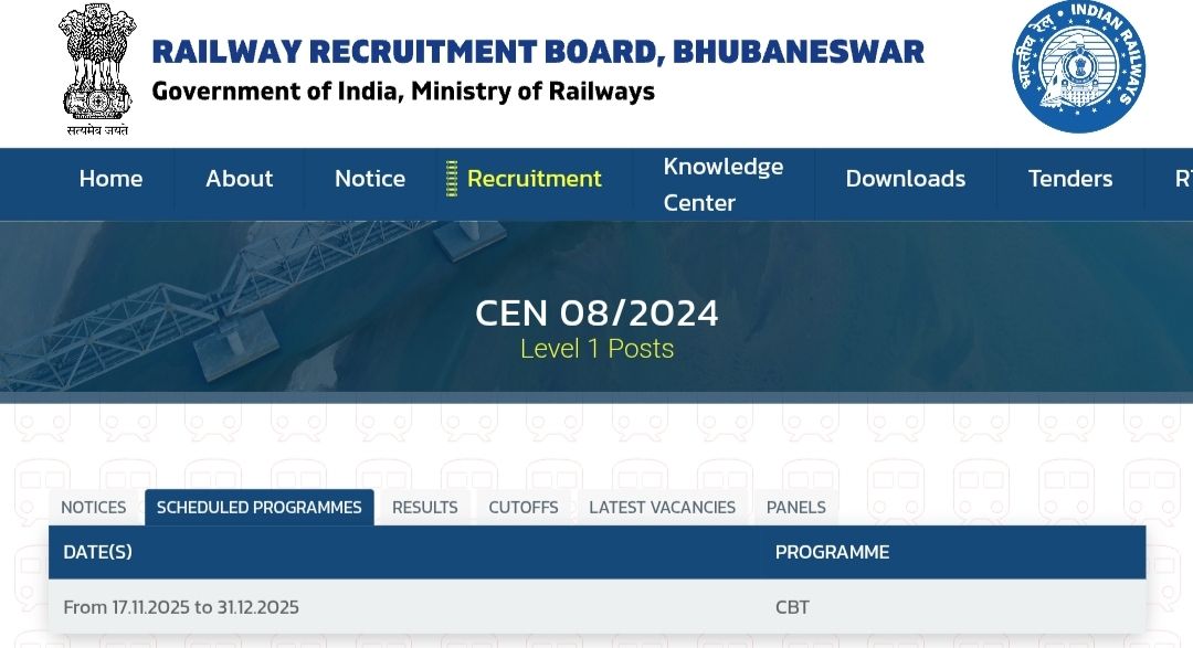 The Railway Recruitment Board (RRB) has officially announced the exam date for the Group D Level I Recruitment (CEN No. 08/2024). The examination will be conducted from 17 November to 31 December 2025 across various centres in India.