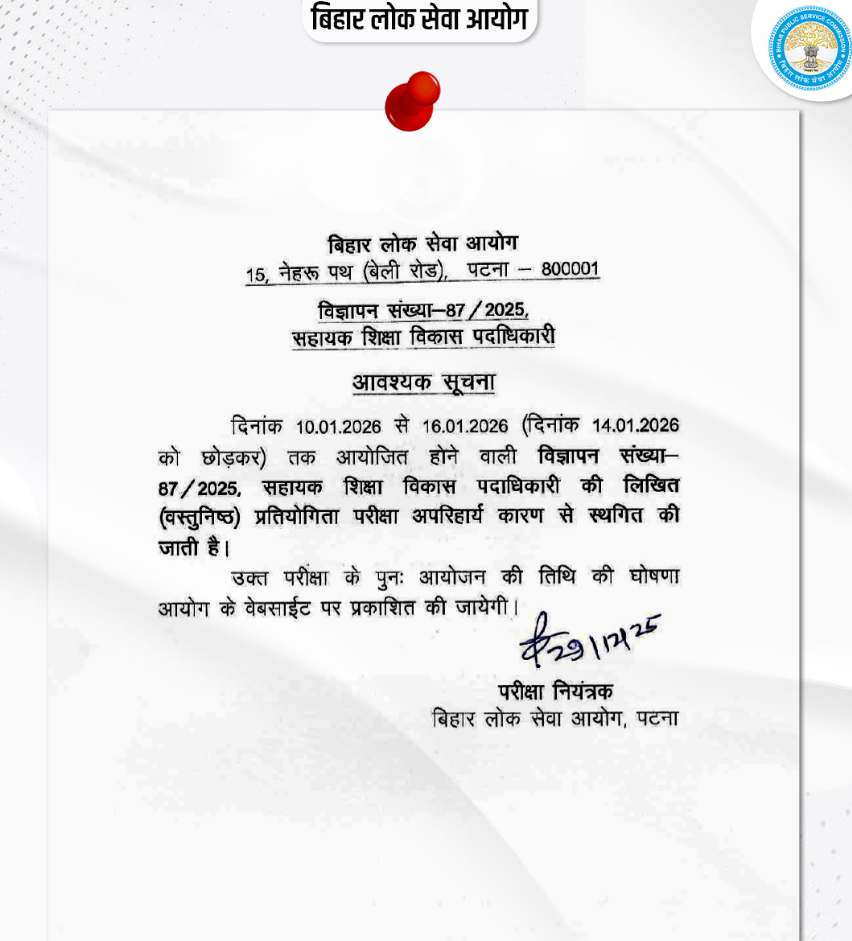 The BPSC AEDO 2025 Exam Postponed Notice has been officially issued for candidates who applied for the Assistant District Education Officer recruitment. The examination, which was earlier scheduled to be conducted in January 2026, has now been postponed. Fresh dates will be announced after further review by the commission.