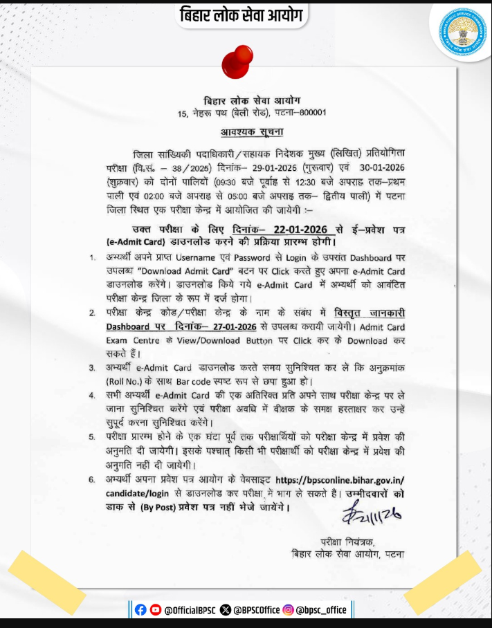 BPSC DSO / Assistant Director Mains Admit Card 2026 – Download Hall Ticket for 29–30 January Exam