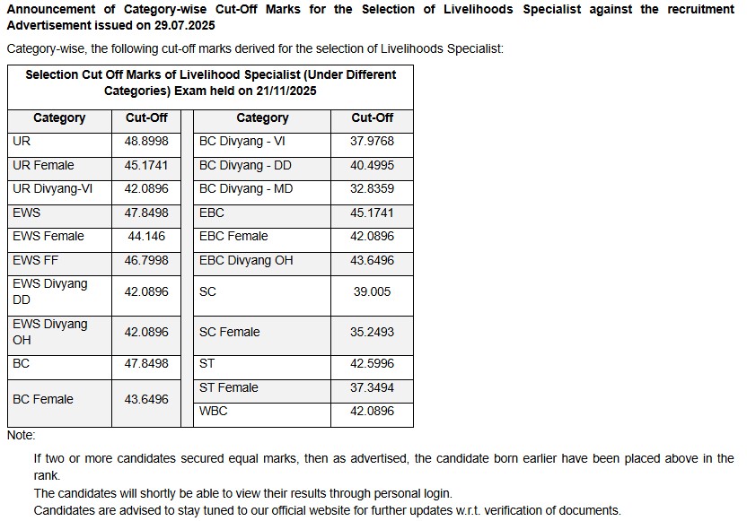 - The examination was conducted between 19 November and 15 December 2025, and now candidates can check their selection status through the result PDF. This recruitment includes multiple posts across administrative and field-level roles, offering a stable career in rural development programs.